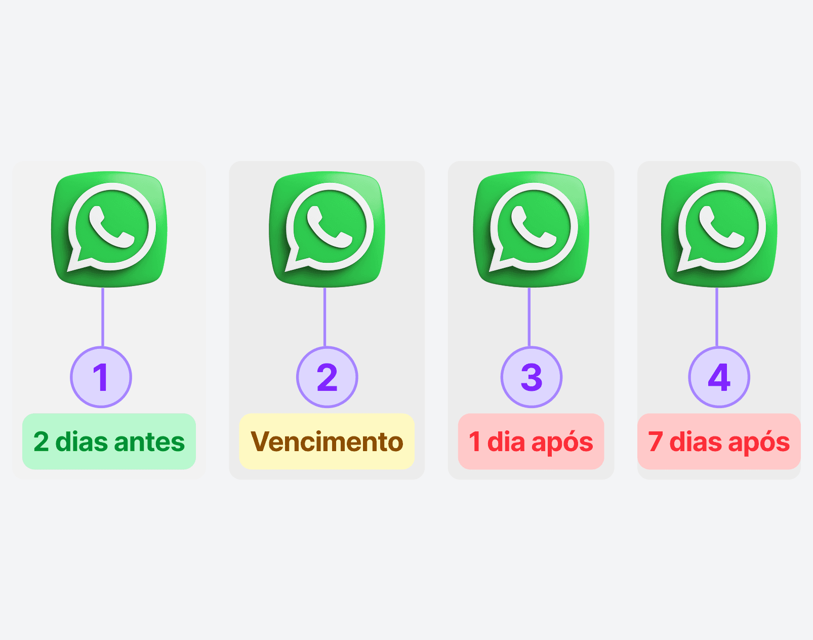 Automatize lembretes de pagamento antes e depois do vencimento, sem precisar de um sistema financeiro completo.